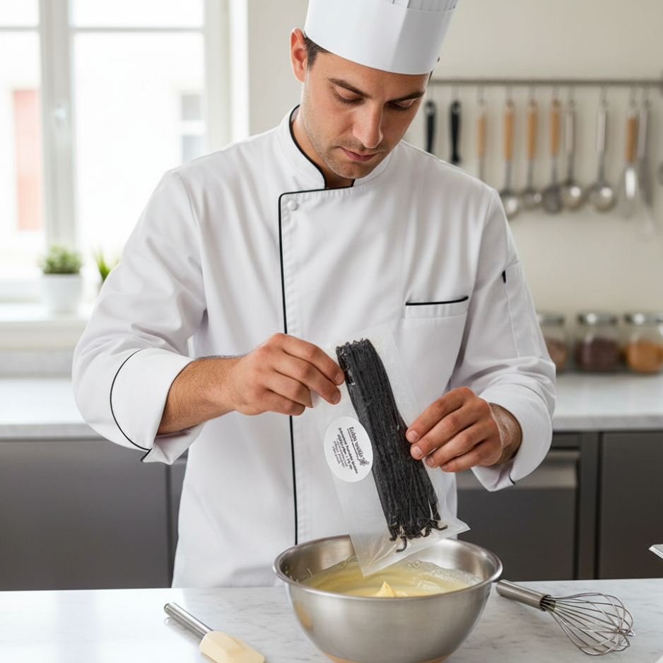 Sie stammen ausschließlich aus unseren eigenen Lieferketten und sind zu 100 % rückverfolgbar – von den Vanilleplantagen bis zur Ankunft in Frankreich.