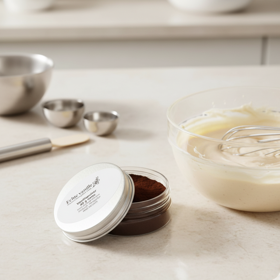Das Pulver bewahrt die besten Aromen der Vanilleschote und besitzt dank des Herstellungsprozesses keine Röstaromen.